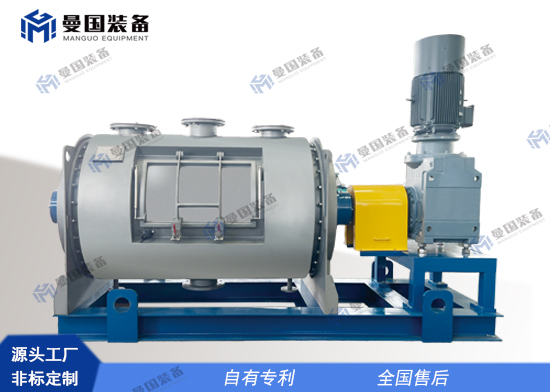干燥機(jī)筒體設(shè)置夾套和保溫,當(dāng)含一定水分的物料進(jìn)入設(shè)備后,設(shè)備動部件運(yùn)轉(zhuǎn)帶動主軸上安裝的多組錯位犁刀攪拌器以及筒體兩側(cè)板位置設(shè)置的旋轉(zhuǎn)刮板運(yùn)轉(zhuǎn),使筒內(nèi)物料產(chǎn)生不間斷漩渦離心力,不斷重疊翻轉(zhuǎn),同時在結(jié)構(gòu)上避免攪拌死角問題。查看更多 + -